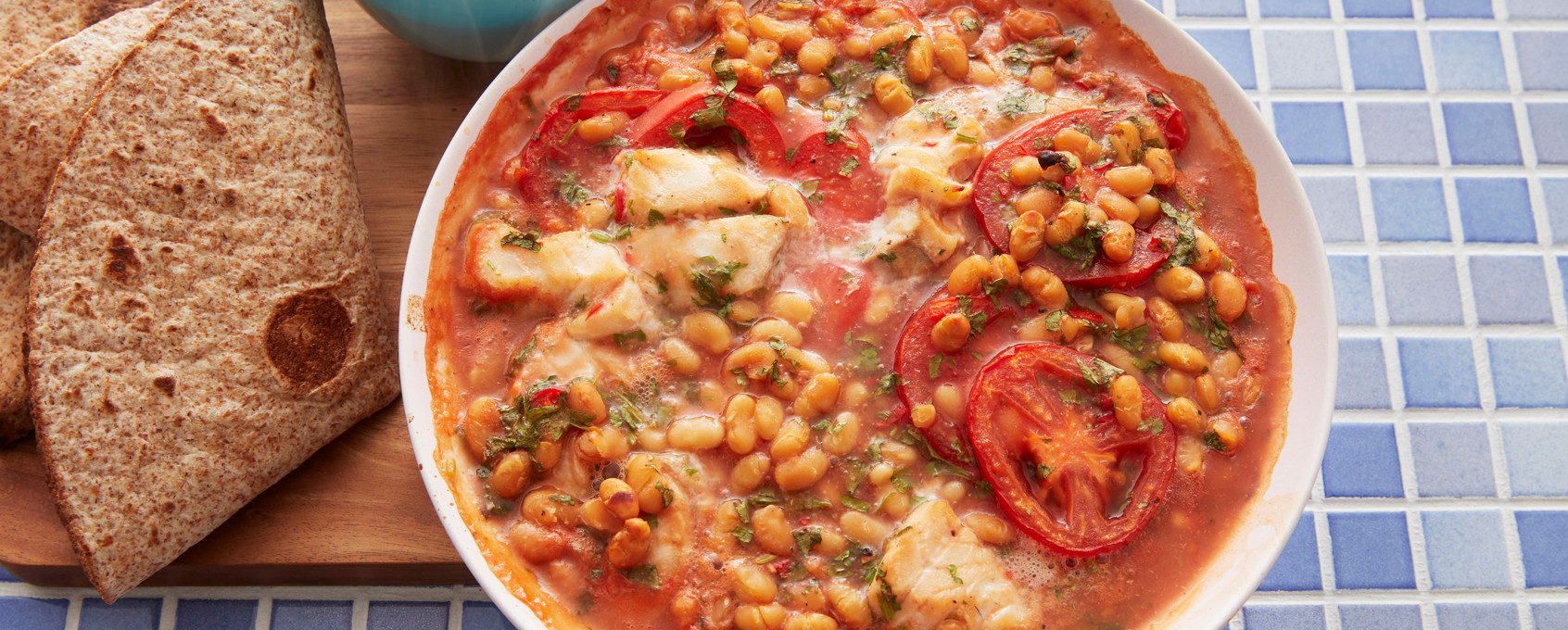 - Dice the fish, slice the tomatoes and pepper and finely chop the chilli before mixing this with the tinned beans, roughly chopped parsley, salt and pepper in a bowl.