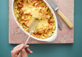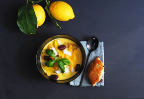 2. Slice the aubergine in two and scrape out the flesh. Add to a pan with lemon juice, butter, salt and pepper. Mash together with a spoon to form a purée, keeping some of the “crunch” and heat.