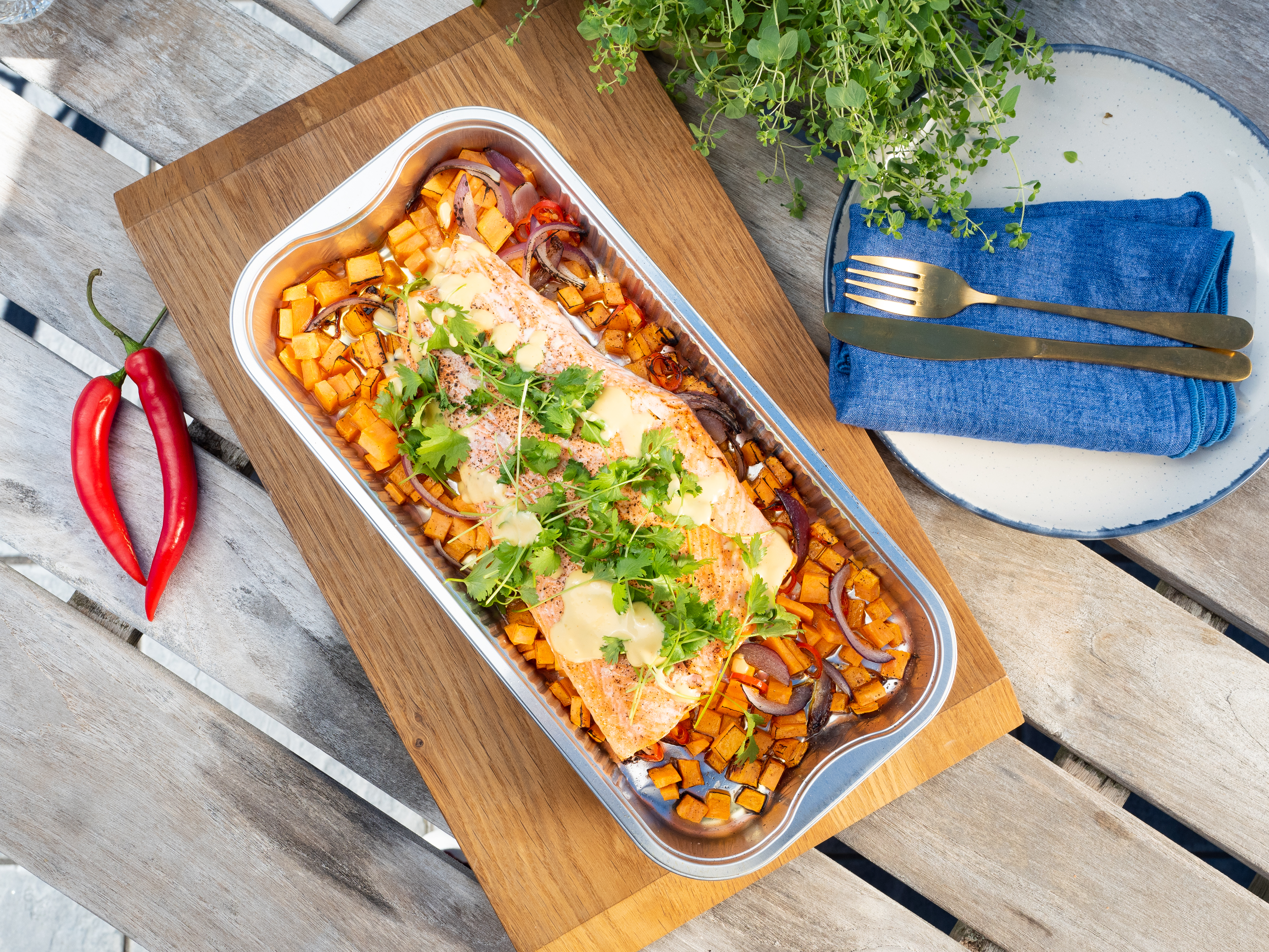 Visste du at Lerøy sine sommerprodukter i aluminiumsformer kan settes rett på grillen? Alt du trenger å gjøre er å fjerne plastemballasjen og absorbenten i bunnen, tilsette eventult ønskelig smak, og ha formen på forvarmet grill i cirka 15 minutter.