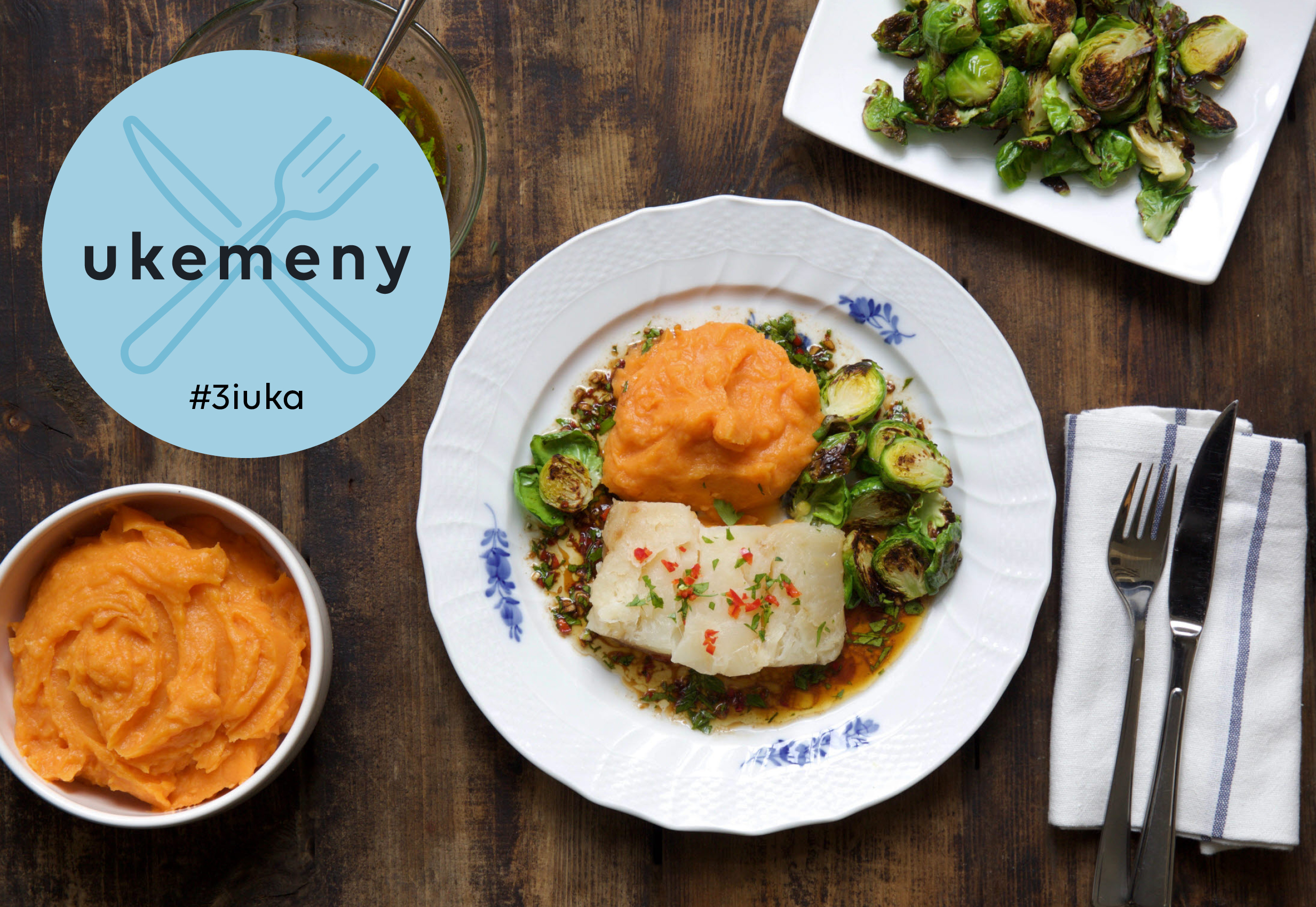 Har du hørt om #3iuka? Det står for tre fiskemiddager i uken, som er basert på Helsedirektoratets kostråd, og er like viktig som fem om dagen. Det tilsvarer 300-450 gram ren fisk, og over halvparten av dette bør være fet fisk som laks og ørret. Her finner du ukemenyer som er satt sammen nettopp slik – med skikkelig gode oppskrifter med mest laks, og litt torsk, reker og annen sjømat. Resten av uken kan du sette sammen akkurat slik du vil.