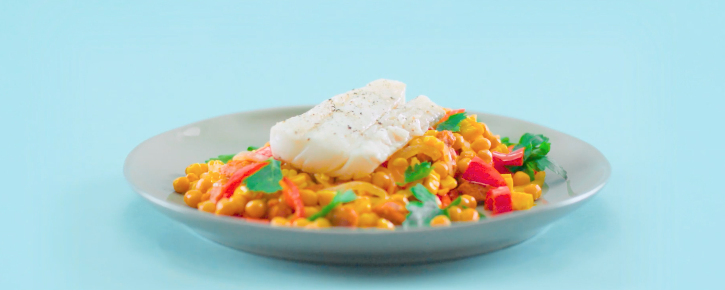 5. Ha over stekt torsk, og topp det hele med hjemmelaget tacosaus. Serveres med fersk koriander.