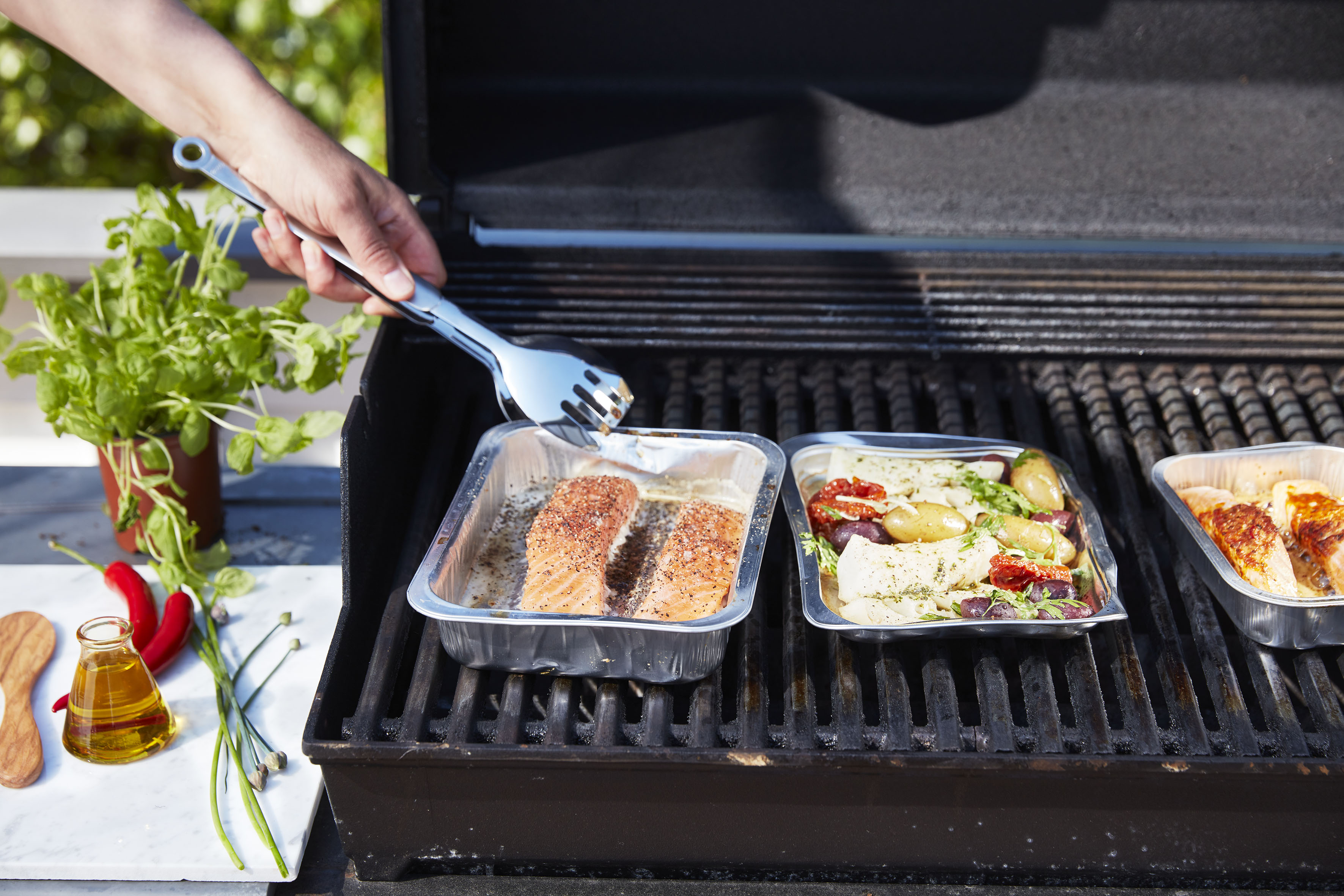 Lax och torsk på grillen